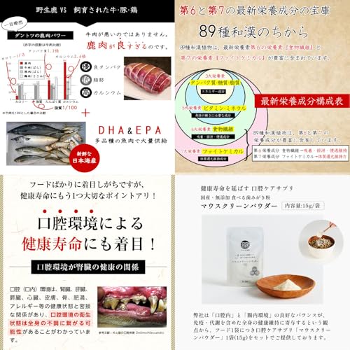 - 高品質な原材料: 鹿肉、馬肉、イベリコ豚などの高品質な生肉を使用し、栄養価が高いです。